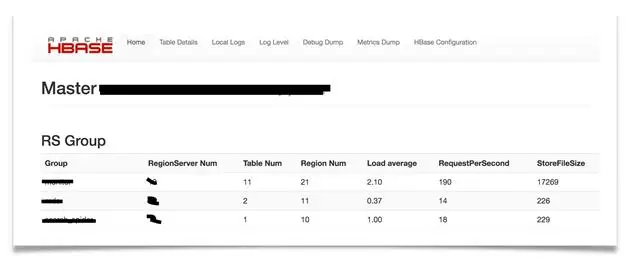 最后我们把分组功能接入了BDP运维平台。DBA在配置实例的时候,根据业务选择不同的分组。通过rsgroup 解决拆分集群问题,可运维性也得到了提升。另外,不同于之前的平滑滚动重起,动不动就需要几天,我们也通过移动分组的方式进行集群滚动从而缩短维护时间。考虑到不同分组的replication可能会产生影响,我们也开发不同分组的replication功能,主集群的日志只能发送到备份集群的同一个分组的regionserver中。在集群页面上,我们也添加不同分组统计,效果如下: