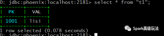 Hbase表中插入一条数据,phoenix表中查询